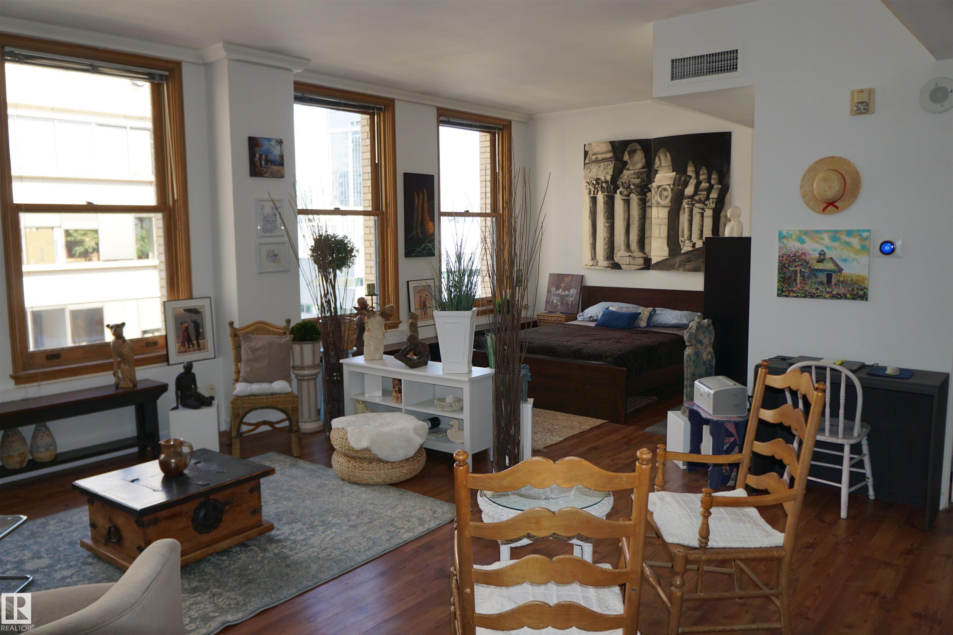 Includes: Dishwasher-Built-In, Oven-Microwave, Refrigerator, Stove-Electric, Washer, Window Coverings, See Remarks Site Influences: Corner Lot, Picnic Area, Playground Nearby, Public Transportation, Schools, Shopping Nearby, View City, View Downtown Property InformationProperty Type: Apartment High Rise Home Style: Loft Year Built: 1905 Total Floor Area: 545 sq. ft. Brokerage: Maxwell Heritage Realty Listed Date: Please login or create an account Community InformationCity/Town: Edmonton Community: Downtown (Edmonton) ExteriorLot Size: 0.00 sq.ft. Exterior: Corner Lot, Picnic Area, Playground Nearby, Public Transportation, Schools, Shopping Nearby, View City, View Downtown Front Exposure: East Roof: Tar & Gravel Parking: See Remarks InteriorHeating: Y Basement: None, No Basement Floor Finish: Laminate Flooring, Linoleum RoomsTotal Bedrooms: 1 (Bedrooms Above: 1) Bathrooms: Full: 1 / Half: 0 Above Grade: 4 Legal, Financial & PossessionLegal Description: Lot/Unit: Lot/Unit:,Plan:Block: Monthly Fee: 581 Listing Courtesy of Andrew Blais / Maxwell Heritage Realty Copyright 2026 by the REALTORS® Association of Edmonton. All Rights Reserved. Data is deemed reliable but is not guaranteed accurate by the REALTORS® Association of Edmonton. Data was last updated February 12, 2026, 9:18 pm. MLS®: E4472847 - Downtown (Edmonton) Loft $177,500