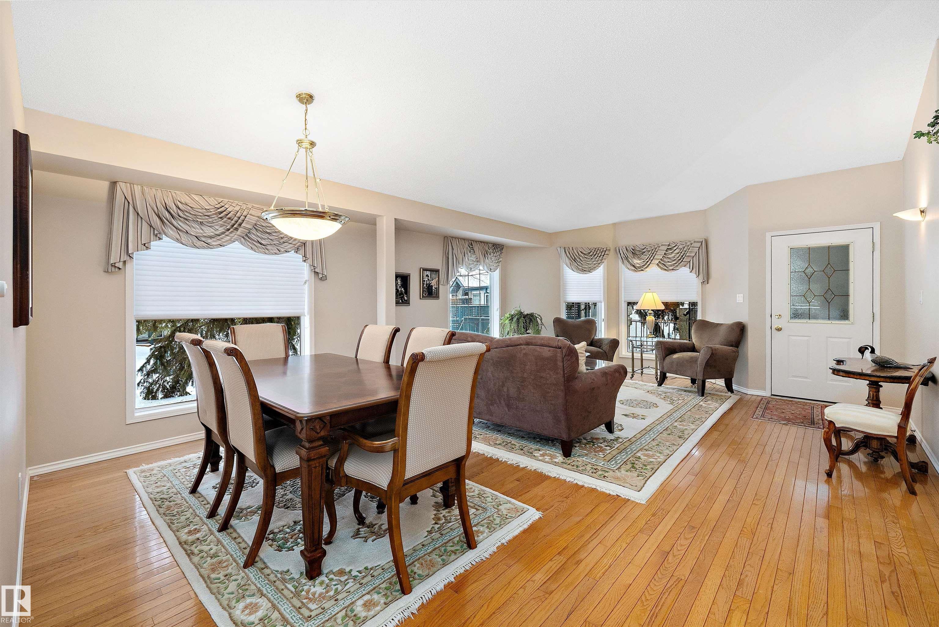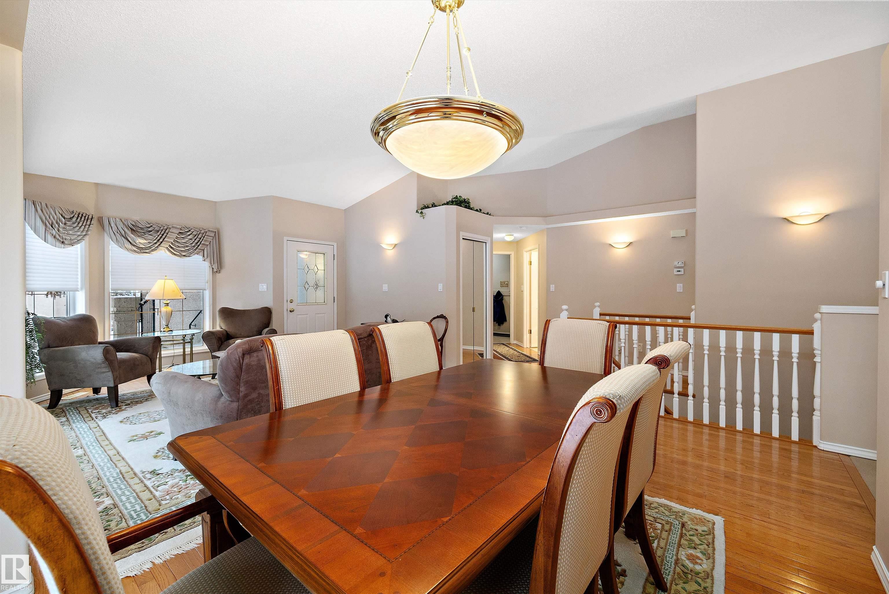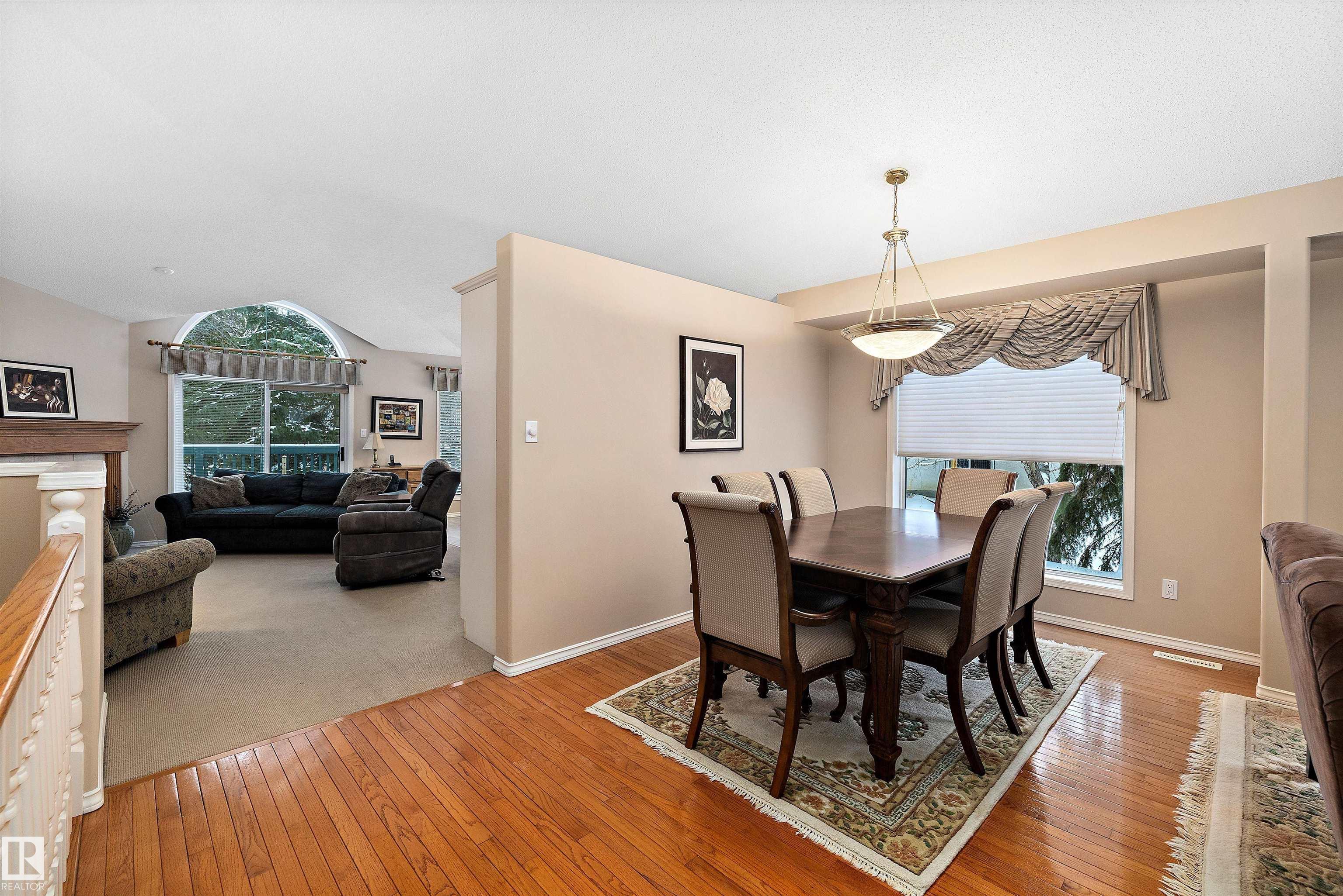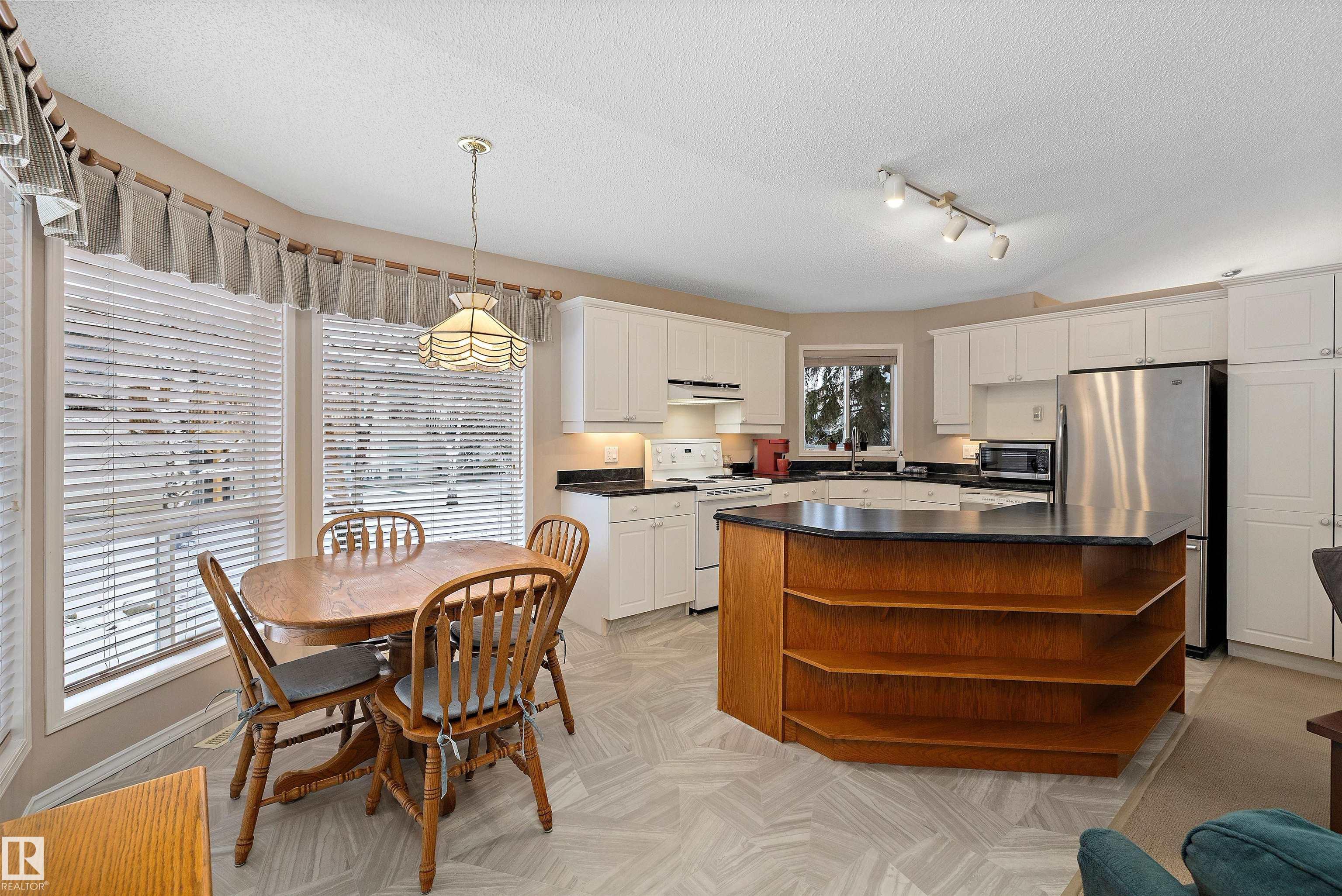 This impeccable RIVERBEND bungalow in Riverside Common delivers ADULT, MAINTENANCE-FREE living at its absolute finest! Tucked into a quiet keyhole and backing onto Dry Creek Park, it offers mature trees, peaceful views, and exceptional privacy. Inside, you're greeted by soaring VAULTED ceilings, a sun-soaked south-facing living room, and an inviting open-concept kitchen--perfect for Christmas gatherings or cozy evenings by the TOASTY fireplace. Enjoy summer BBQs on your beautiful private deck, then retreat to an ENORMOUS primary suite complete with a walk-in closet and a wonderfully functional ensuite. The DOUBLE attached garage adds comfort year-round, and you're only steps from transit, a pharmacy, the recreation centre, and the stunning river valley. With quick access to Terwillegar Drive and the Anthony Henday. This private oasis blends convenience with serenity--your ideal next chapter awaits. MLS®: E4467980 - Haddow Bungalow $495,000